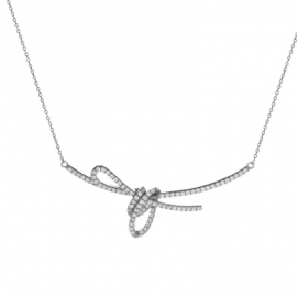 Gargantilla en forma de lazada fabricada en plata de ley con brillantes circonitas blancas que crean un diseño elegante y romántico. Perfecto para combinar con tus looks en tus eventos especiales.