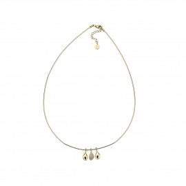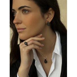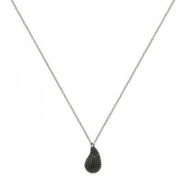 Gargantilla fabricada en plata de ley con diseño de mini gota con circonitas en color negro. La cadena mide 40cm de largo + 4.8cm de extensión. El colgante mide 1.6cm de largo. Cierre de mosquetón.