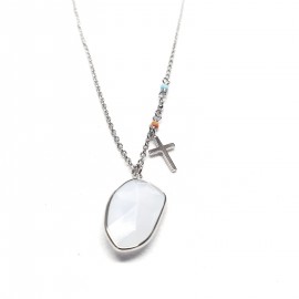 Gargantilla en plata de ley con piedra natural y colgante cruz, detalles de bolitas esmaltadas. 40 + 6 cm de largo