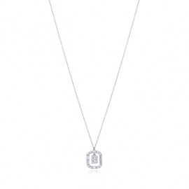 Collar con la letra B de plata y circonitas blancas de 42 cm de largo. Luce una joya personalizada y realizada con los mejores materiales, con extremo mimo y cuidado. Un colgante que te acompañe siempre, con el que llenar de buenos momentos la vida. Brilla como solo tú sabes.