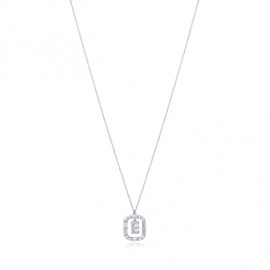 Collar con la letra E de plata y circonitas blancas de 42 cm de largo. Luce una joya personalizada y realizada con los mejores materiales, con extremo mimo y cuidado. Un colgante que te acompañe siempre, con el que llenar de buenos momentos la vida. Brilla como solo tú sabes