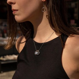 Gargantilla en acero con colgante en plata de ley. JOYERÍA ARTESANAL