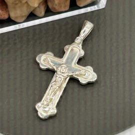 Cruz en plata de ley con Cristo en relieve. 37mm de largo