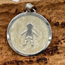 Medallón en plata de ley con baño de rodio. 33mm de diámetro