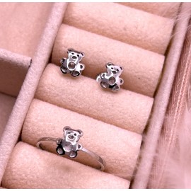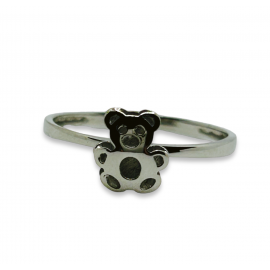 Sortija de niña en oro de 18k. Combinada con oro blanco y circonitas.