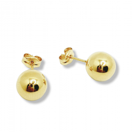 Pendientes en oro de 18k. Bola lisa de 8mm. Cierre de presión.