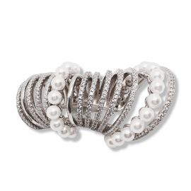 Pendiente earcuff único de plata con circonitas y perlitas.