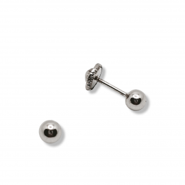 pendientes bolitas de oro blanco de 18k con cierre de rosca. 4mm de diámetro.