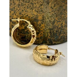 Aros fabricados en plata de ley con baño de oro y efecto martillado. Cierre italiano. Ideales para combinar con tus looks de día a día.