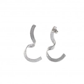 Pendientes fabricados en plata de ley en forma de tirabuzón tallados con dibujo de espiga. Cierre de presión. Miden de largo 4.2cm.