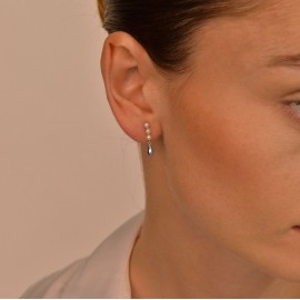 Pendientes fabricados en plata de ley formado por tres perlas pequeñas y una pera lisa colgando. Cierre de presión. Miden 1.8cm de largo. Perteneces a la colección HÉRITÈRE de Salvatore plata.