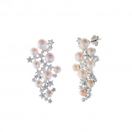 Pendientes fabricados en plata de ley con 8 perlas cada uno y brillantes circonitas blancas. Cierre de presión. Miden 3.5cm de largo. Pertenecen a la colección WEDDING de Salvatore plata.