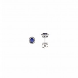 Pendientes fabricados en plata de ley con brillantes circonitas blancas que rodean una circonita color zafiro de forma ovalada en el centro del mismo. Cierre de presión.