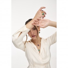 Anillo de Durán Exquse de la colección Matisse de plata dorada con agata negra y aventurina verde