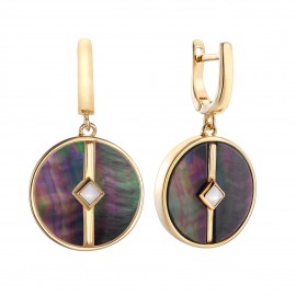 Pendientes fabricados en plata dorada con madreperla negra y blanca.