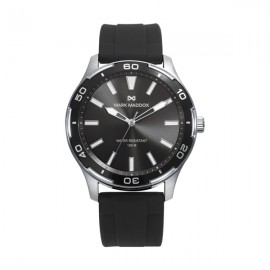 Reloj caja bicolor de acero e Ip rosa, 5 atm, correa negra, movimiento cuarzo.