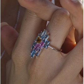 Anillo con piedras de colores estilo geométrico, ideal para aportar un toque de color a tus looks.