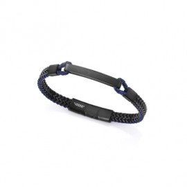 Pulsera doble de hombre en acero, combinada con piel trenzada en negro y azul, que aporta un toque de estilo moderno y rústico. El contraste entre los tonos de la piel y la robustez del acero crea un diseño equilibrado y lleno de carácter. Perfecta para el hombre que busca un accesorio versátil y elegante, esta pulsera es ideal tanto para el día a día como para ocasiones especiales. Su diseño doble añade textura y dinamismo, convirtiéndola en una pieza imprescindible en cualquier colección masculina. Largo 19.5-21 cm.