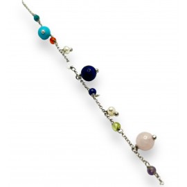 Pulsera en plata de ley y bolitas en lapizlázuli, perla, turquesa y cuarzo de color. 16+3cm de largo