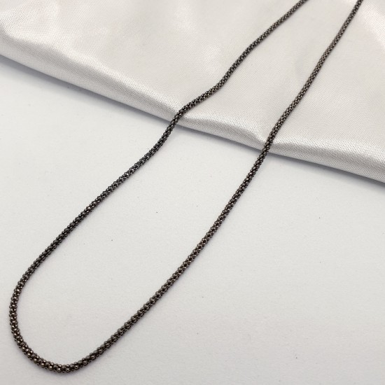 Cadena en plata de ley con baño de rutenio. 80cm de largo.