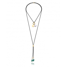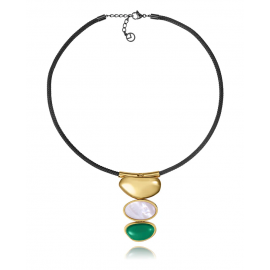 Collar de resina y latón bañado. Acabado e-coating. Cierre mosquetón y cadena de extensión.