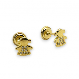 Pendientes en oro de 18k con circonitas. Cierre de rosca.