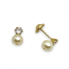 Pendientes tu y yo en oro de 18k con perlita de 2,5mm. Cierre de rosca