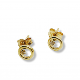 Pendientes en oro de ley con circonita. Cierre de presión. 5mm de diámetro.