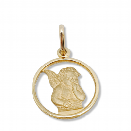 Medalla calada Ángel en oro de 18k. 10mm de diámetro.