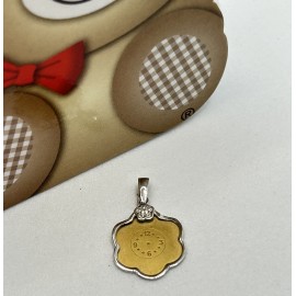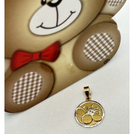 Medalla para bebé, en oro de 18k. bicolor. Para grabar hora de nacimiento. 14mm de diámetro
