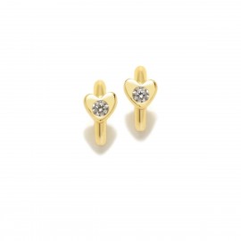 Aros fabricados en plata de ley con baño de oro en forma de corazón con una brillante circonita en el centro.