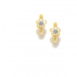 Aros fabricados en plata de ley con baño de oro en forma de flor con una brillante circonita en el centro.