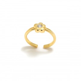 Anillo multisize fabricado en plata de ley con baño de oro en forma de flor con una brillante circonita blanca en el centro.