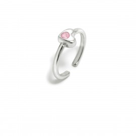 Anillo multisize fabricado en plata de ley con baño de rodio en forma de corazón con una brillante circonita color rosa en el centro.