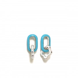 Pendientes fabricados en plata de ley con baño de rodio en forma de flor y esmalte azul. Cierre de presión
