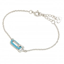Pulsera fabricada en plata de ley con baño de rodio en forma de flor y esmalte en color azul. Tiene cadena alargadora. Cierre de mosquetón.