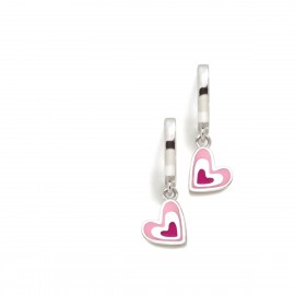 Pendientes fabricados en plata de ley con baño de rodio y esmalte rosa con forma de corazón. Cierre de presión.