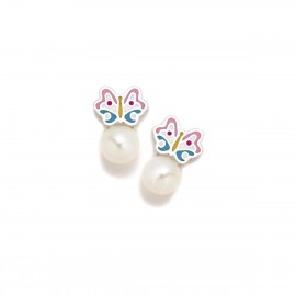 Motivo de niña de acero Ip dorado con forma de iglesia.