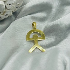 Colgante en forma de Indalo en tamaño mediano fabricado en Oro de 18k. Mide 2cm de largo más la reasa.