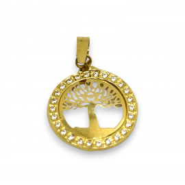 Colgante en oro de 18k con circonitas en cerco. 12mm de diámetro.
