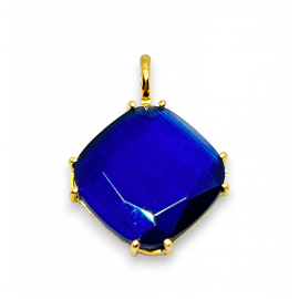 Colgante en oro de 18k y piedra natural en tono azul montada en garras. 15mm de largo.