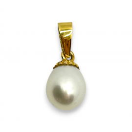 Colgante en oro de ley y perla de 7mm de diámetro.