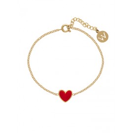 Pulsera de bisutería, fabricada en acero con baño dorado y esmaltado en rojo. 17+3cm de largo.