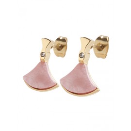 Pendientes de bisutería en acero dorado con piedra rosa, cierre de presión.