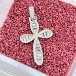 Cruz en plata de ley con circonitas en baguete horizontal y cerco de circonitas. Mide 3.5cm de largo