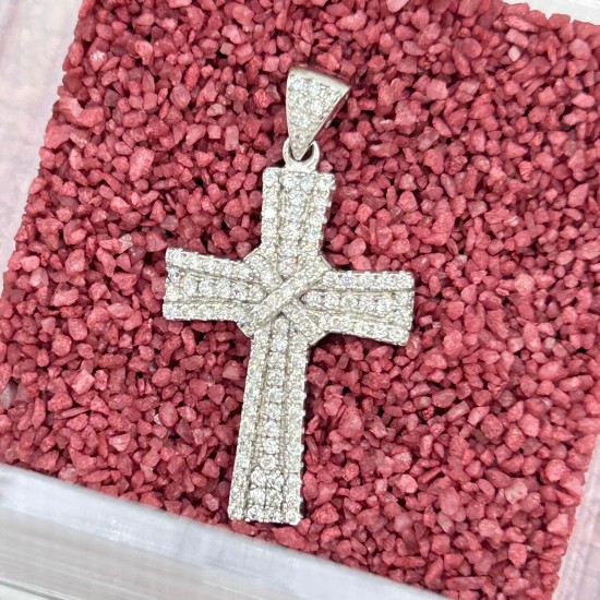 Cruz en plata de ley con circonitas. 3.5cm de largo