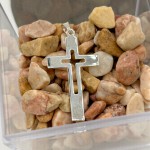 Cruz fabricada en plata de ley calada por el centro. 4.2cm de largo
