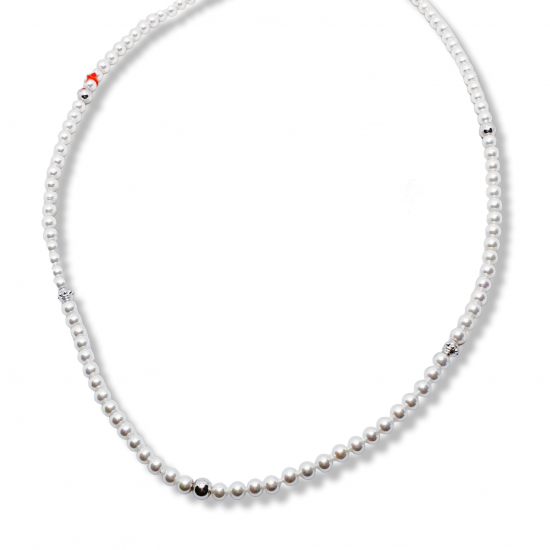 Gargantilla en plata de ley y perlas mallorquinas de la marca ORQUÍDEA. Largo 50cm
