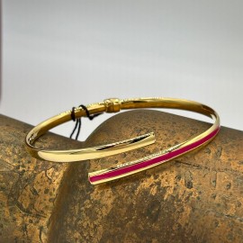 Gargantilla en plata con baño de oro y colgante esmaltado en tono fucsia