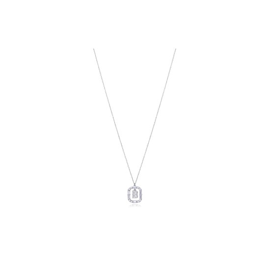 Collar con la letra B de plata y circonitas blancas de 42 cm de largo. Luce una joya personalizada y realizada con los mejores materiales, con extremo mimo y cuidado. Un colgante que te acompañe siempre, con el que llenar de buenos momentos la vida. Brilla como solo tú sabes.